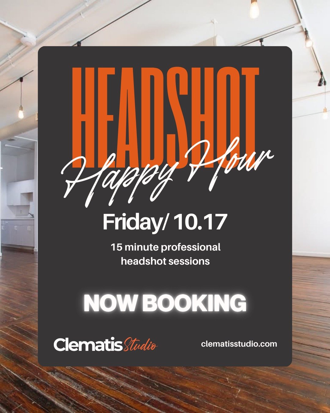 Your professional image deserves its spotlight! 📸 Once a month, our studio hosts Headshot Happy Hour — a full day of professional headshot sessions at a special promotional rate.